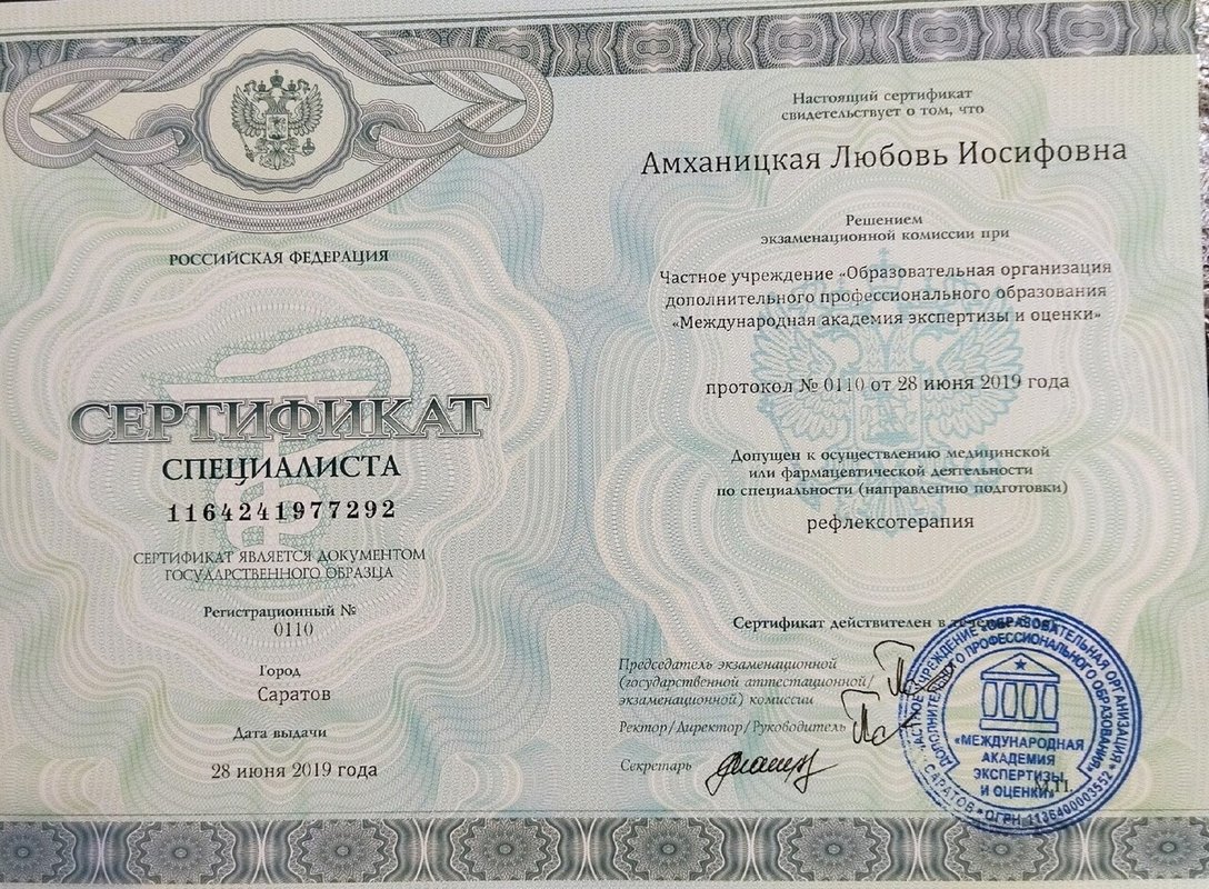 Прошла курс лечения у доктора Амханицкой Любови Иосифовны — реально помогло! Когда внезапно прихватило спину, флоатинг с живым паром буквально поставил на ноги. Врач не только сняла острую боль, но и дала рекомендации, которые продолжаю выполнять.